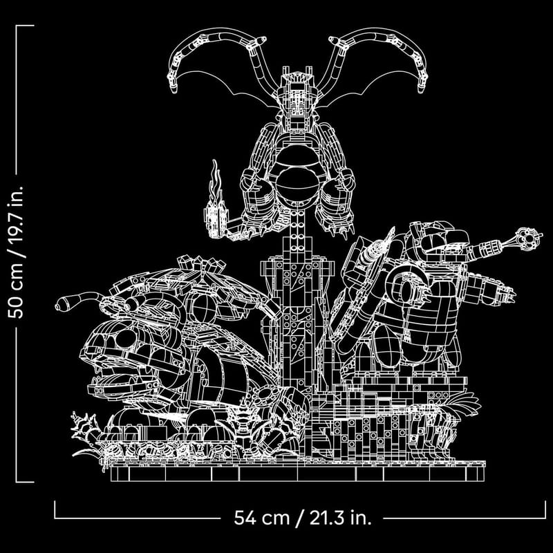 Ce set Pokémon de collection de 6 838 pièces comprend les figurines Venusaur Charizard et Blastoise mesurant respectivement plus de 23 cm 20 cm et 18 cm de hauteur